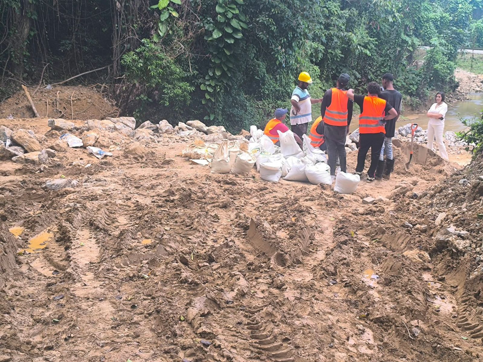 Mientras avanzan los trabajos principales, se ejecutan medidas provisionales, incluyendo el represamiento temporal del agua, a fin de asegurar el suministro a la población.