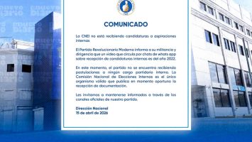 EL NUEVO DIARIO, SANTO DOMINGO.– El Partido Revolucionario Moderno informó este jueves que no se encuentra recibiendo candidaturas para aspiraciones internas y advirtió que un video que circula en grupos de WhatsApp sobre una supuesta apertura de postulaciones corresponde al año 2022.