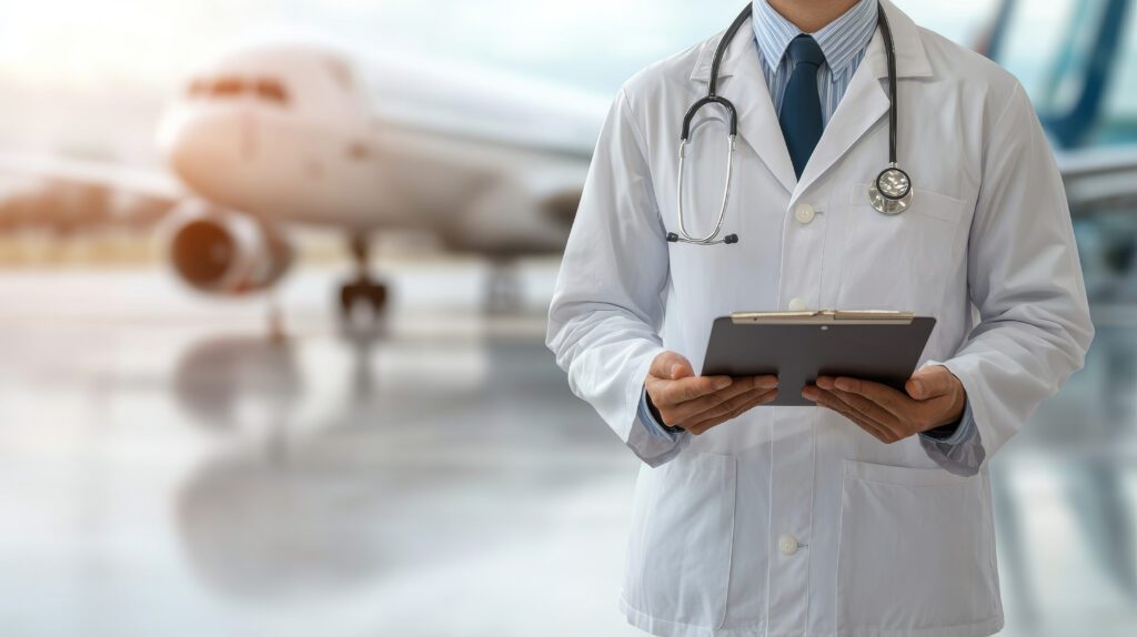 A través de comunicación por satélite o mediante la conectividad a bordo, la tripulación puede contactar directamente con médicos de urgencias cualificados en materia de aviación, quienes pueden evaluar las circunstancias, asesorar sobre el uso del contenido del botiquín de a bordo y apoyar la toma de decisiones operativas, incluyendo si se debe considerar un desvío.