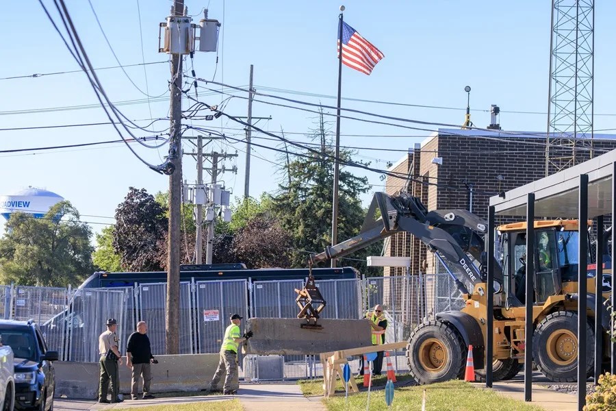 Fotografía de archivo de trabajadores colocando barricadas de concreto afuera del centro de detención del ICE en Broadview, Illinois, EE.UU. EFE/EPA/Cristóbal Herrera Ulashkevich