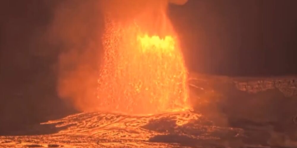 La columna volcánica, una mezcla caliente de gases, cenizas y fragmentos de roca eyectada verticalmente, alcanzó unos 6.000 metros de altura y las fuentes de lava ascendieron hasta 300 metros sobre el nivel del suelo, informó el Observatorio de Volcanes de Hawái.